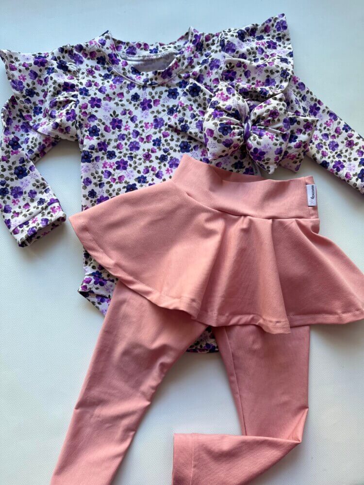 Κορμάκι με βολανάκι στους ώμους.Κολάν παστελ ροζ με ενσωματωμένο σορτσάκι,με άνετη μεσούλα που δεν πατά τα παιδάκια .