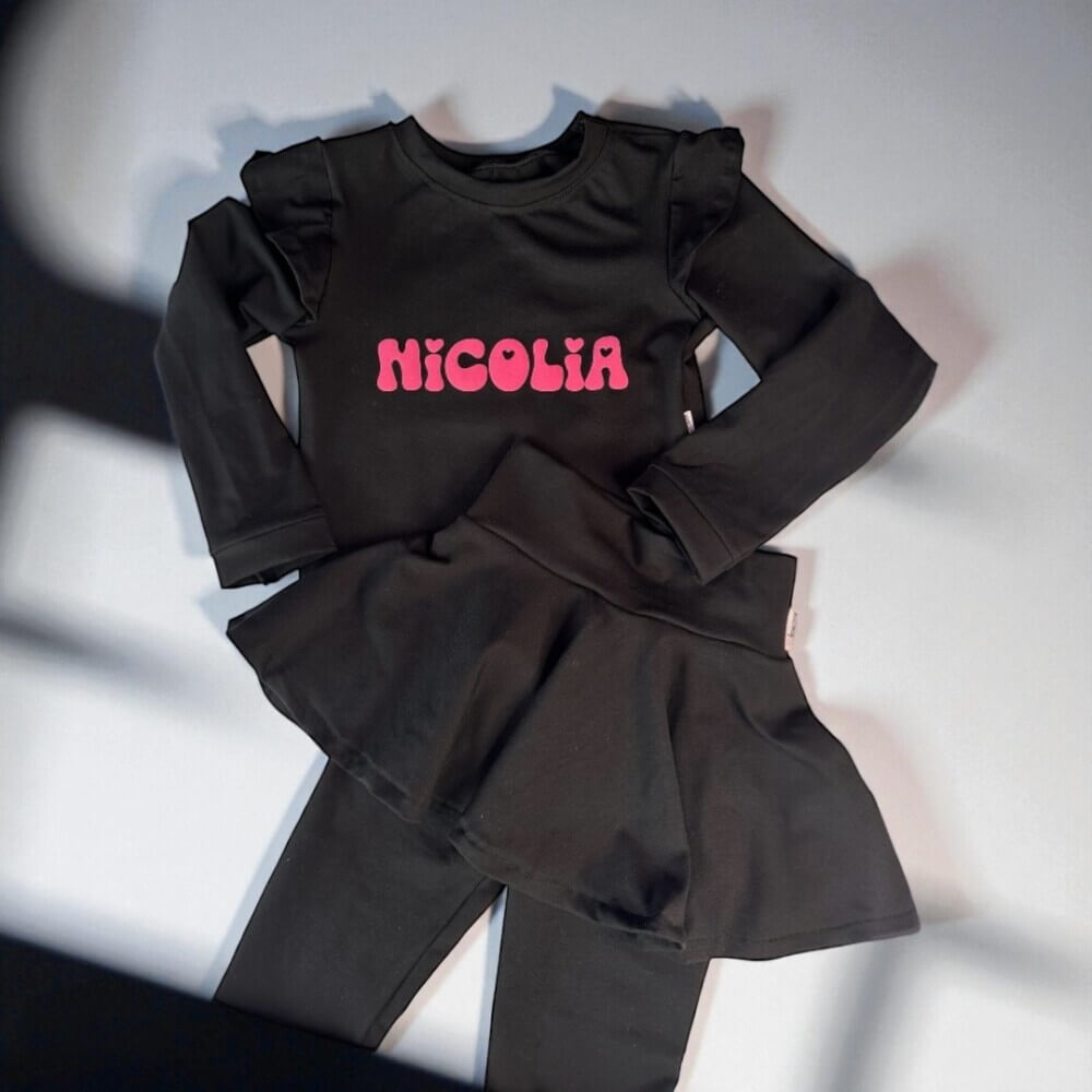 Μπλουζάκι με βολανάκι στα μανίκια και τύπωμα με logo ή όνομα επιλογής σας,με φούξια βελουτέ υφή.