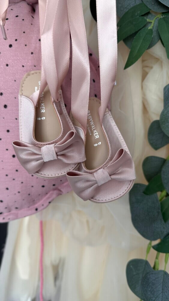 Βρεφικό γαλλικό υφασμάτινο σαμπό αγκαλιάς,με φιόγκο σατέν ροζ αντικέ babywalker.