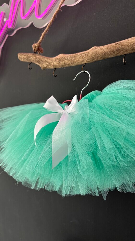 Χειροποίητη φούστα tutu ,με σταθερό τούλι για να την κάνει φουντωτή και εντυπωσιακή και λεπτομέρεια με σατέν φιόγκο διπλής όψης!Είναι φτιαγμένη εξ´ ολοκλήρου στο χέρι!Διαθέτει λάστιχο φαρδύ στην μέση και αρκετά δεσίματα από τούλι αρίστης ποιότητας (σύνθεση συνθετικό)!